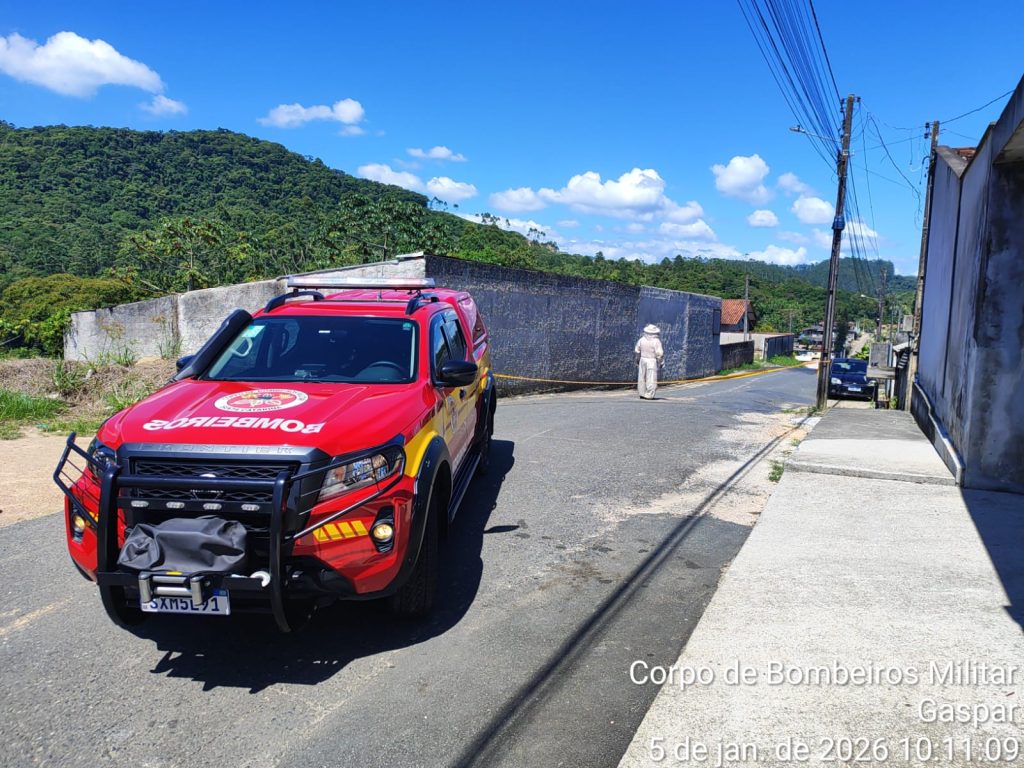 Às 09h23min, de segunda-feira, 05/01/2026, o Corpo de Bombeiros Militar de Gaspar, foi acionado à rua Silva, 560, Bateias, para atender uma vítima de ataque de enxame de abelhas. Os insetos se tornaram agressivos, vindo a atacar o operador da máquina (masculino, maior de idade, que ficou protegido na cabine e não foi ferroado) e moradores de uma residência vizinha, deixando um masculino de 57 anos (com diversas ferroadas pelo corpo) e um masculino menor e um cachorro abrigados dentro de um banheiro (sem ferroadas).