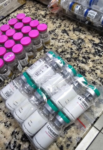 Além dos anabolizantes (hormônios sintéticos derivados da testosterona), os agentes encontraram somatropina (hormônio do crescimento) e remédios de controle de diabetes, além de seringas e ácido hialurônico (substância para tratamento dermatológico).