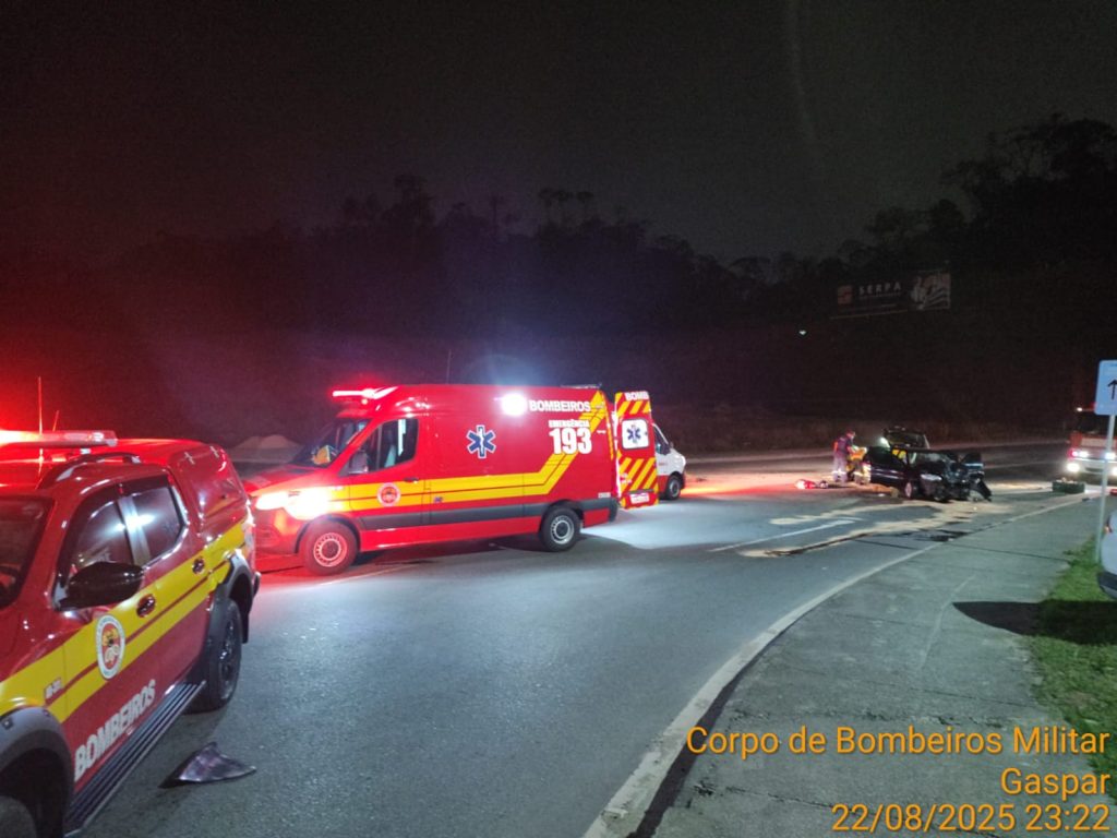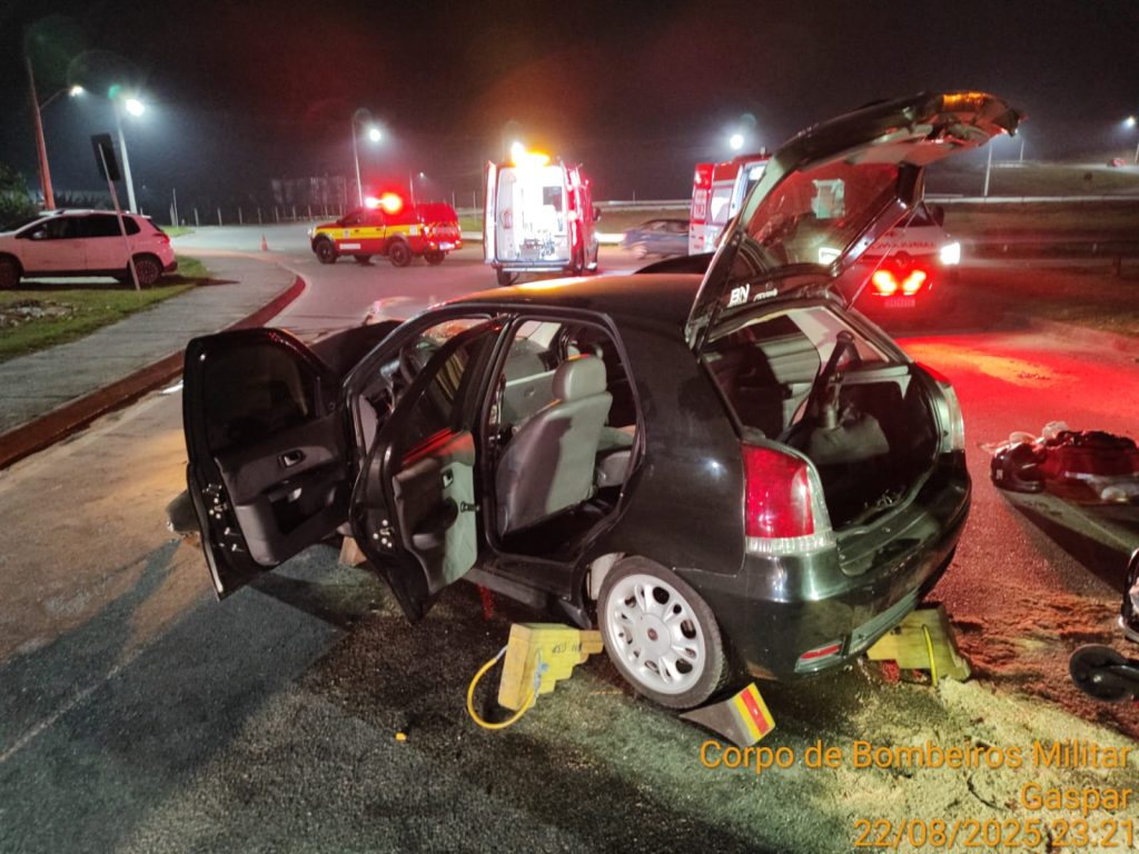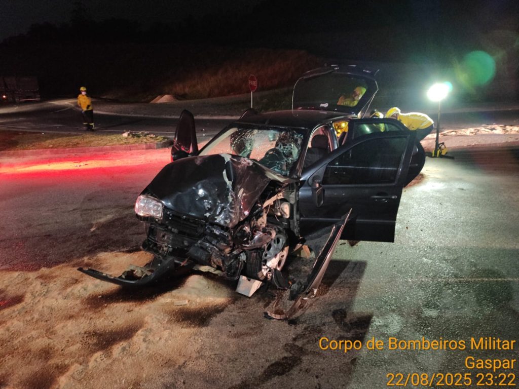 Às 23h01min, de sexta-feira, 22/08/2025, o Corpo de Bombeiros Militar de Gaspar, foi acionado para atender a um acidente de trânsito entre dois veículos na rotatória de acesso entre a rua Pedro Simon e a Ponte do Vale. No local, foi constado uma colisão entre um automóvel e uma carreta, resultando em duas vítimas com ferimentos.