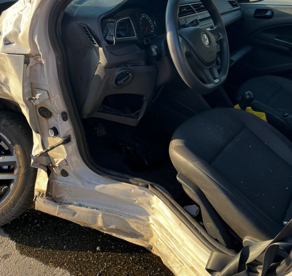 Na chegada da equipe, foi encontrada a condutora do veículo Gol, com idade de 28 anos, ainda dentro do carro com dor na região do pescoço e ferimentos na cabeça, a equipe fez a estabilização com abertura de acesso e retirada da vítima, que foi estabilizada e conduzida ao Hospital Marieta Konder Bornhausen, em Itajaí.