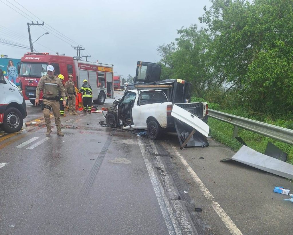 Colisão entre duas caminhonetes deixa duas vítimas graves na Rod. Jorge Lacerda em Ilhota