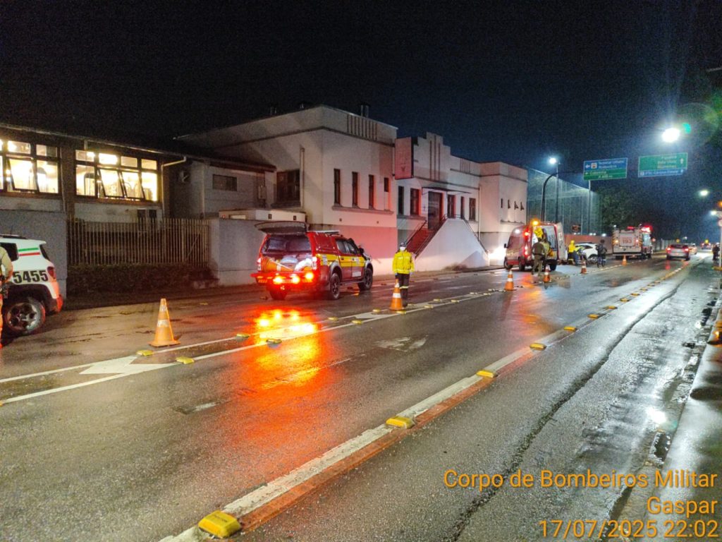 Às 21h47min, de quinta-feira, 17/07/2025, as guarnições do Corpo de Bombeiros Militar de Gaspar, foram acionadas para atender um acidente de trânsito envolvendo dois automóveis, na rua Doutor Nereu Ramos, nas imediações do numeral 620 (próximo a empresa Círculo).