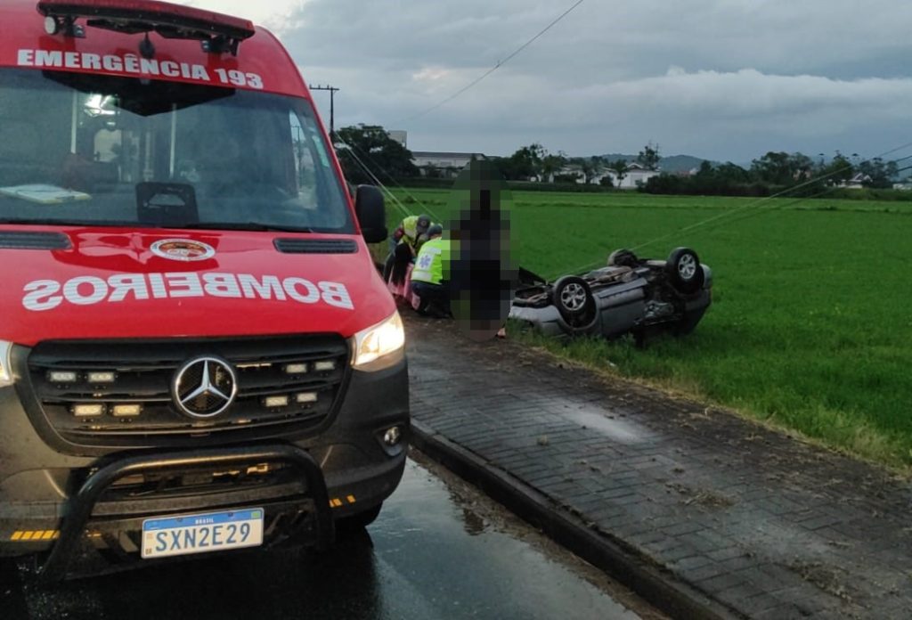 Às 18h54min, de quarta-feira, 03/12/2025, o Corpo de Bombeiros Militar de Gaspar, foi acionado para atender a uma ocorrência de saída de pista, seguida de colisão contra um poste e capotamento, na rua Arthur Poffo, no bairro Santa Terezinha.
