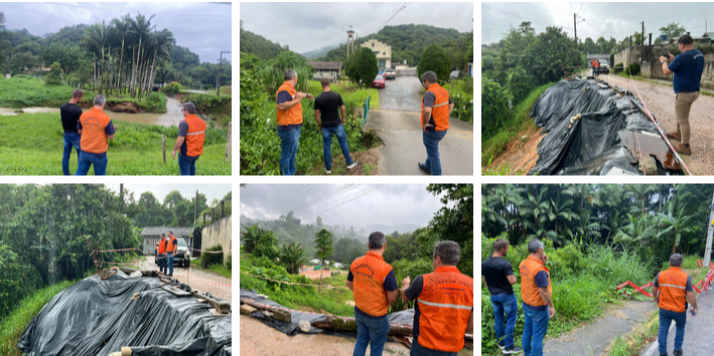 Entre os locais vistoriados, estavam a Galeria Irineu Theiss, na Estrada Geral da Lagoa, um desmoronamento de terra na Rua Maria do Nascimento Pereira dos Santos, além do deslizamento de encosta no início da Rua Frei Solano e pontes com problemas estruturais causados pelas chuvas.