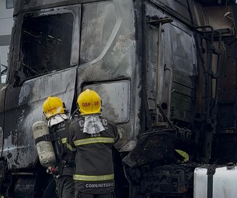 Ao chegarem ao local, a ocorrência foi confirmada, sendo que a Carreta estava no acostamento em chamas e populares já estavam tentando extinguir o fogo, a guarnição realizou a montagem da linha de combate para extinguir as chamas que se encontravam na cabine da Carreta, após o término da extinção do fogo, foi verificado que encontrava-se uma moto em baixo do rodado dianteiro (Cabine) e o condutor da moto, maior de idade, foi atendido pela equipe do ASU do Corpo de Bombeiros Militar de Gaspar, seguindo os protocolos e conduzido ao Hospital de Gaspar, para atendimento médico, o condutor da Carreta foi avaliado e nada sofreu e foi liberado