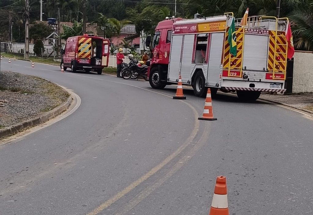 Motociclista sofre escoriações pelo corpo após queda de moto no bairro Minas em Ilhota