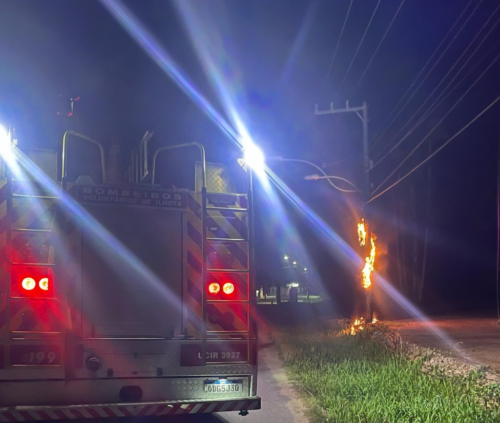 À 01h43min, de sexta-feira, 28/02/2025, o Corpo de Bombeiros Voluntários de Ilhota, foi acionado para atender a um incêndio em poste de energia elétrica, nas margens da Rodovia Jorge Lacerda, no Centro de Ilhota.