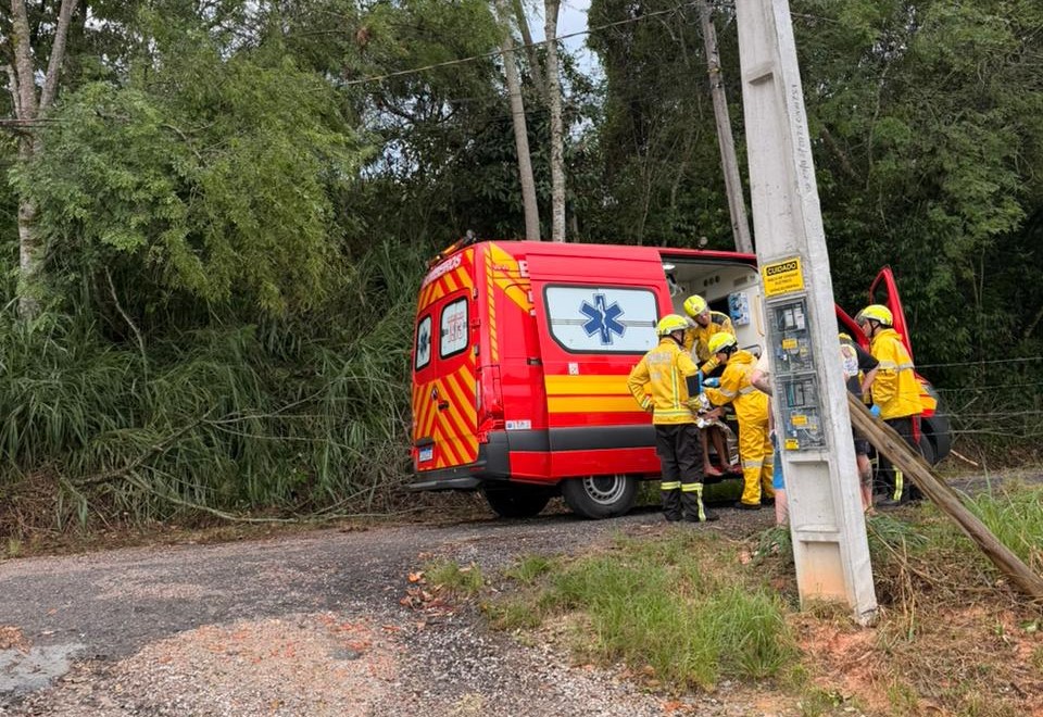 A vítima apresentou sinais vitais dentro dos parâmetros de normalidade, estava com suspeita de TCE, de fratura em membro inferior esquerdo e membro superior esquerdo. Devido às lesões, a paciente teve os membros imobilizados, foi protocolada em maca rígida com colar cervical e uso de manta térmica e encaminhada ao hospital de Gaspar para atendimento, pelo ASU-581 (ambulância).